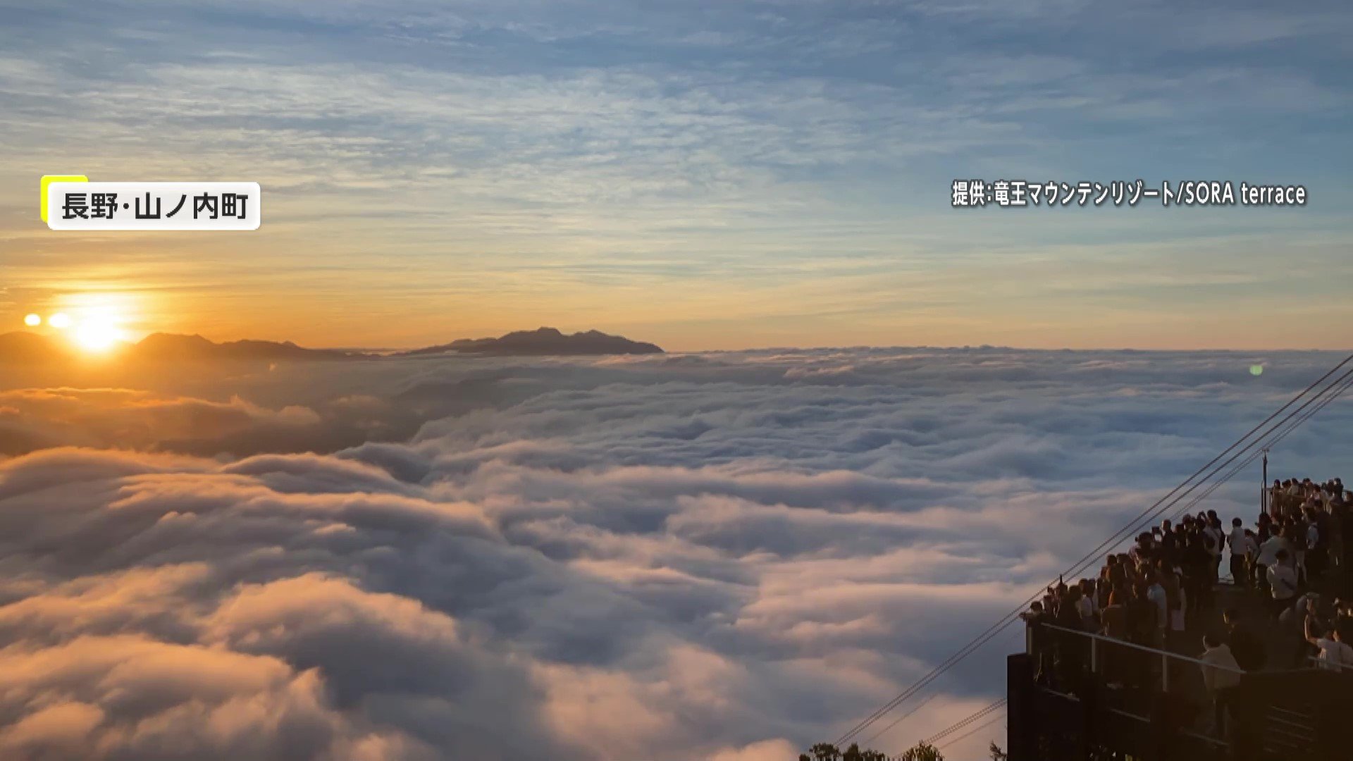 【絶景】夕日で黄金色に輝く雲海…“激レア”特殊な地形が織りなす鮮やかな雲のじゅうたん 長野県・竜王マウンテンリゾート(FNNプライムオンライン)