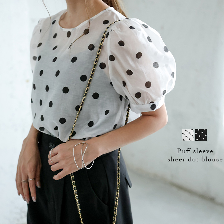 【半額クーポン対象】ブラウス 半袖 パフスリーブ シアー ト …